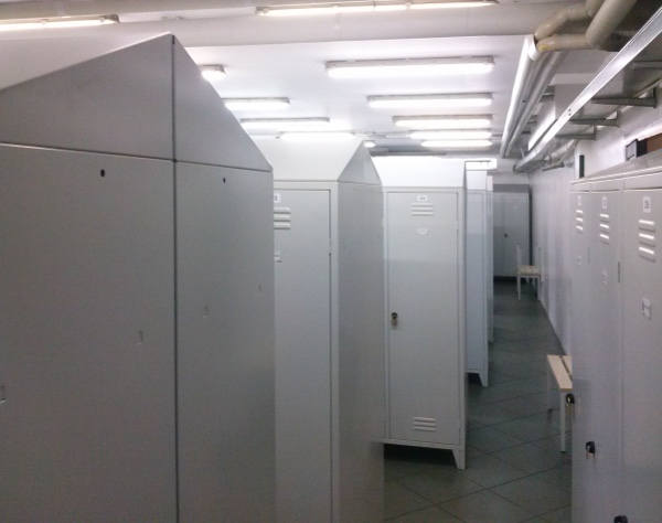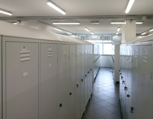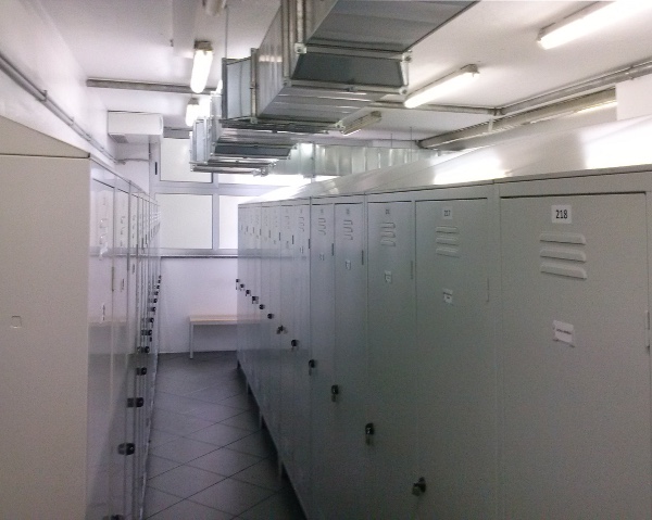I moduli utilizzati sono il 2 posti sporco/pulito art. 2S2, versione lucchettabile da 100x50x180, con piano superiore, piano inferiore e divisorio.