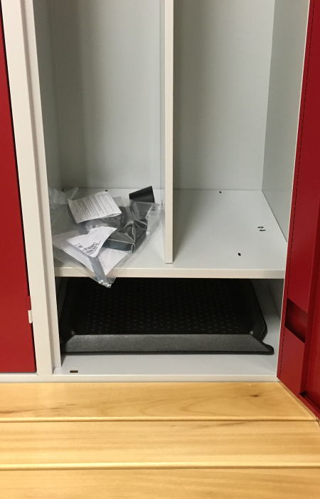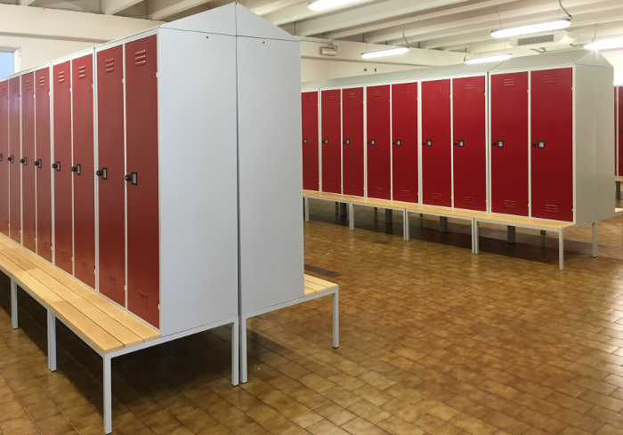 La soluzione richiesta era quella di un armadio personalizzato, su panca portante che, fornisse tutti i requisiti richiesti dalla normativa D.L.g.s. 81/2008, fosse idonea all’allestimento di un’azienda metalmeccanica con utilizzo di DPI e che fosse completa di una serie di accessori come, il tetto inclinato antipolvere, il gancio appendi accappatoi/asciugamano, la vaschetta porta scarpe e la numerazione.