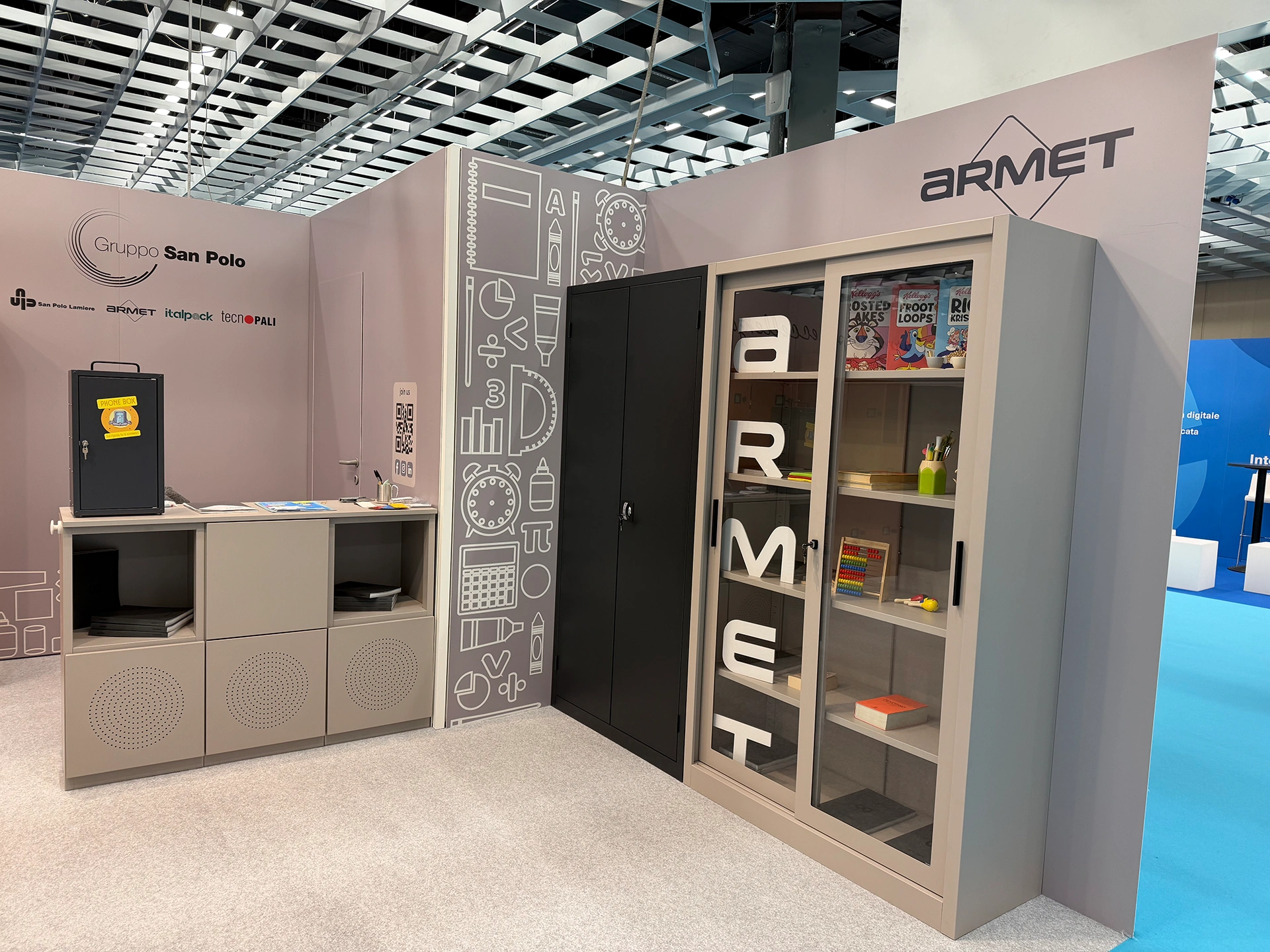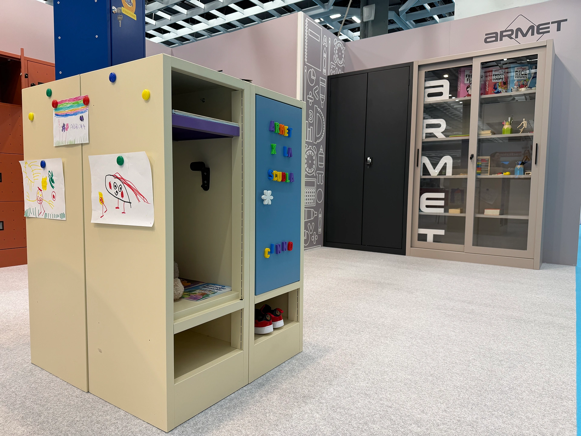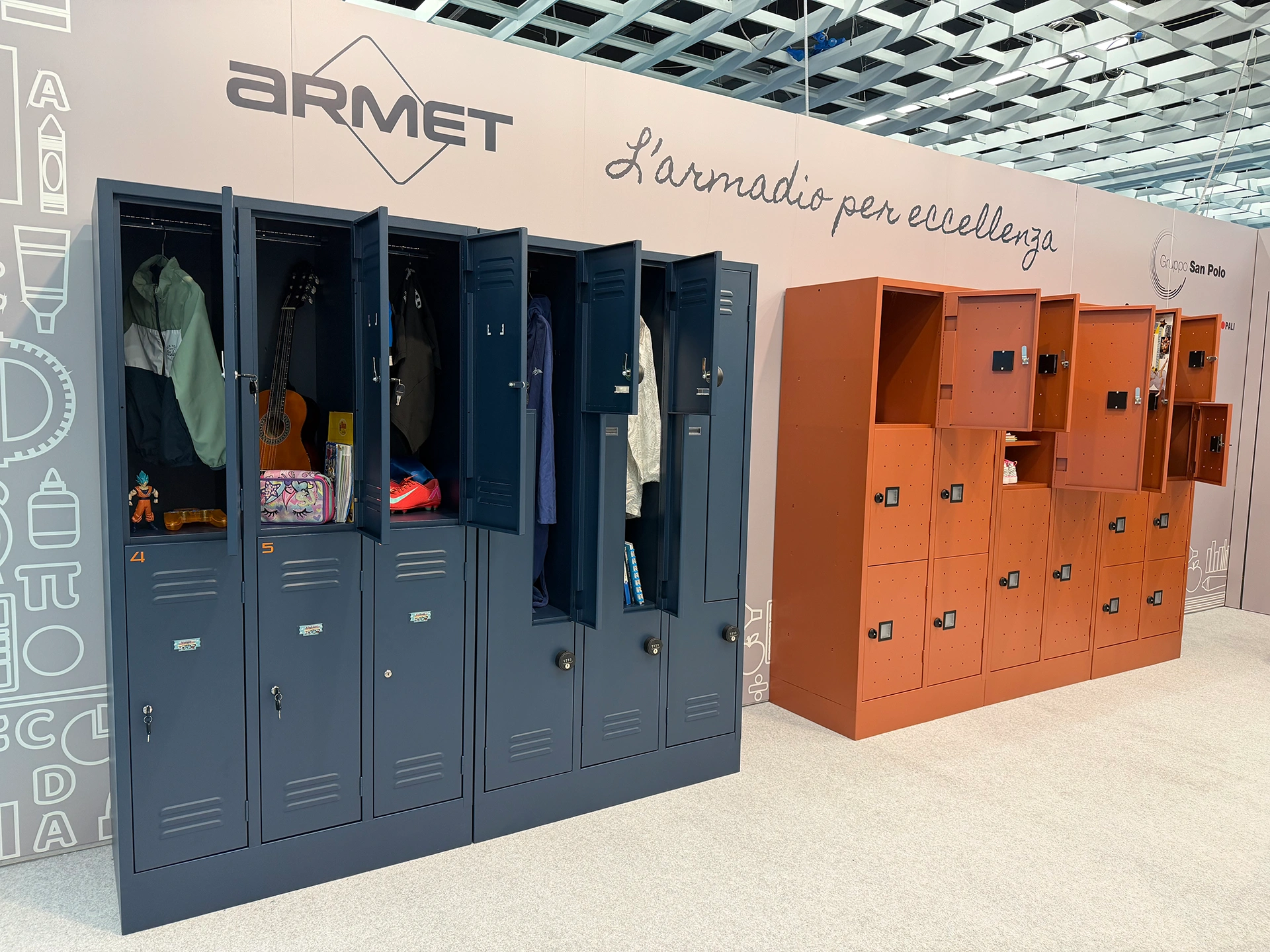 Durante la fiera abbiamo presentato le soluzioni Armet dedicate alle scuole, sistemi di arredo progettati per rispondere alle esigenze concrete degli ambienti educativi. Armadi spogliatoio, casellari e soluzioni per l’organizzazione degli spazi comuni pensati per garantire ordine, resistenza e durata nel tempo, senza rinunciare a un’estetica pulita e coerente con il contesto scolastico contemporaneo.