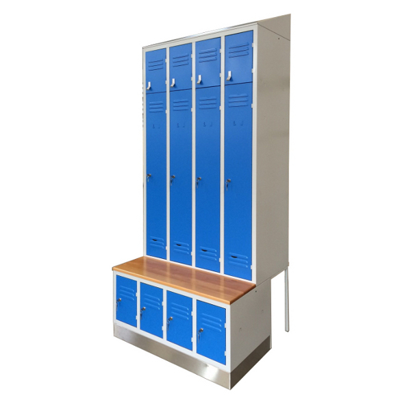La parte inferiore, sotto – panca, è dedicata al contenimento delle calzature da lavoro, l’accesso avviene tramite l’apertura di una serratura avente chiave comune alla serratura dell’armadio principale.