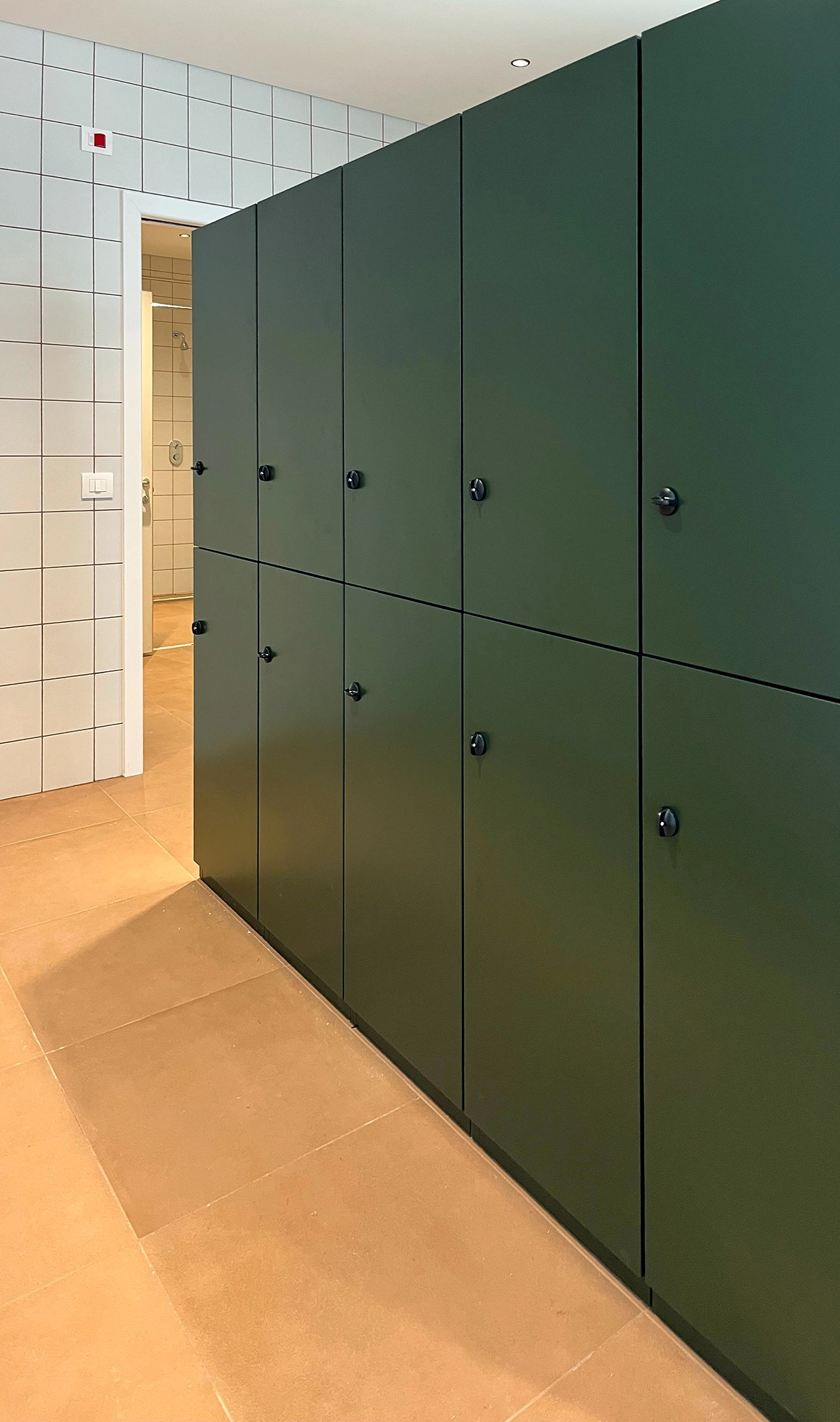 Questa realizzazione dimostra come anche un semplice spogliatoio possa diventare un ambiente elegante e funzionale. Gli armadi metallici SENSO offrono infatti la massima personalizzazione: dal colore agli interni, fino ai sistemi di chiusura, adattandosi ad ogni esigenza progettuale.